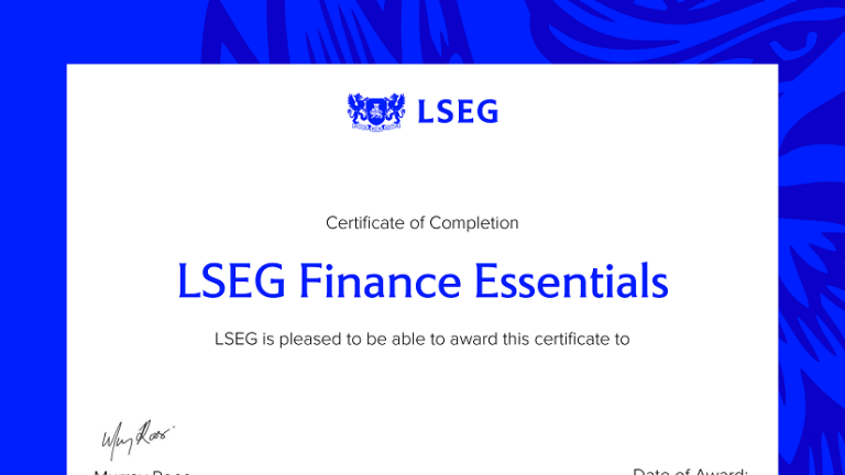 Receive a globally recognized certificate that demonstrates your knowledge signed by LSEG’s Group Head of Capital Markets. Upon successful completion of a final assessment you will be issued a certificate that you can easily share with peers and future employers on LinkedIn.